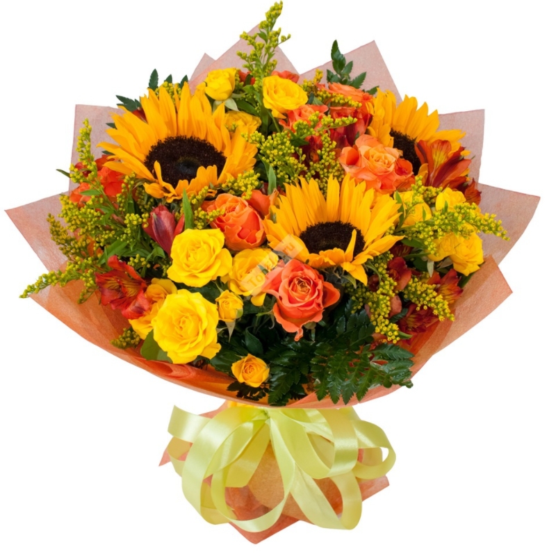 Альстромерия, Подсолнух, Роза, Роза кустовая |