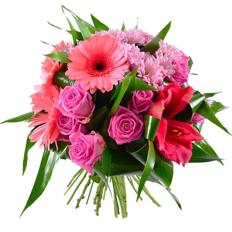 Амариллис 1 шт., Гербера 4 шт., Роза 7 шт., Хризантема кустовая 4 шт. |