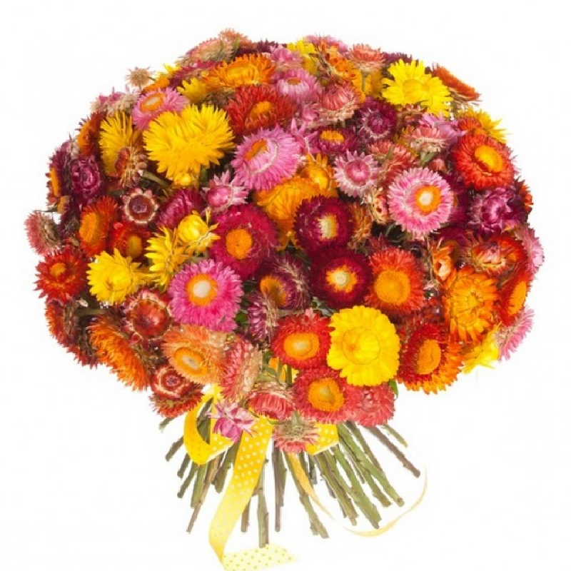 Букет состоит из MIX из 101 астры, прозрачная упаковка, атласная лента.