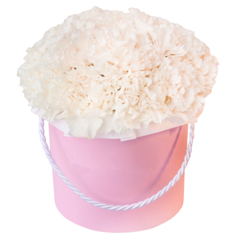Букет из 25 белых гвоздик,в коробке