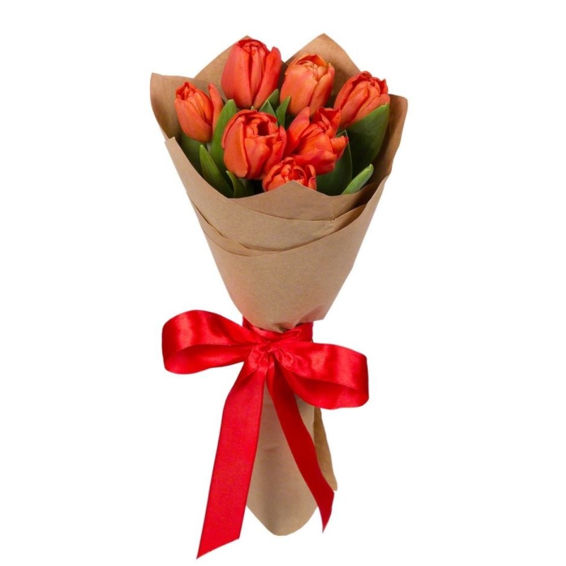 Букет из 7 красных тюльпанов в крафте