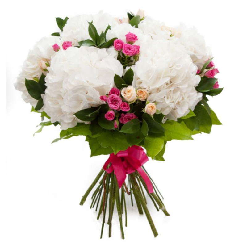 Букет из гортензий и кустовых роз