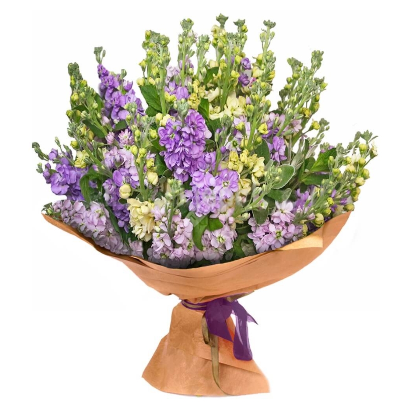 Букет из сиреневых маттиол в крафте