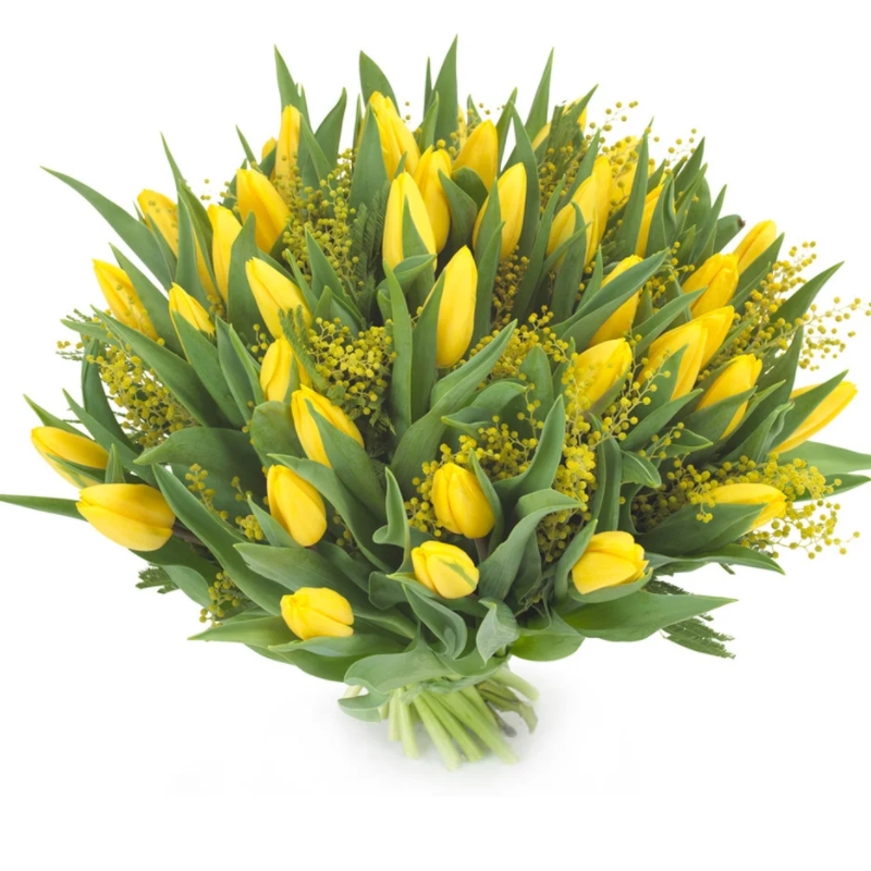 Мимоза 8 шт., Тюльпан 45 шт. |