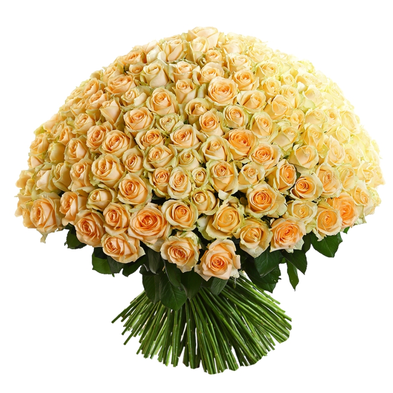 Букет состоит из 201 кремовая роза, прозрачная упаковка, атласная лента.