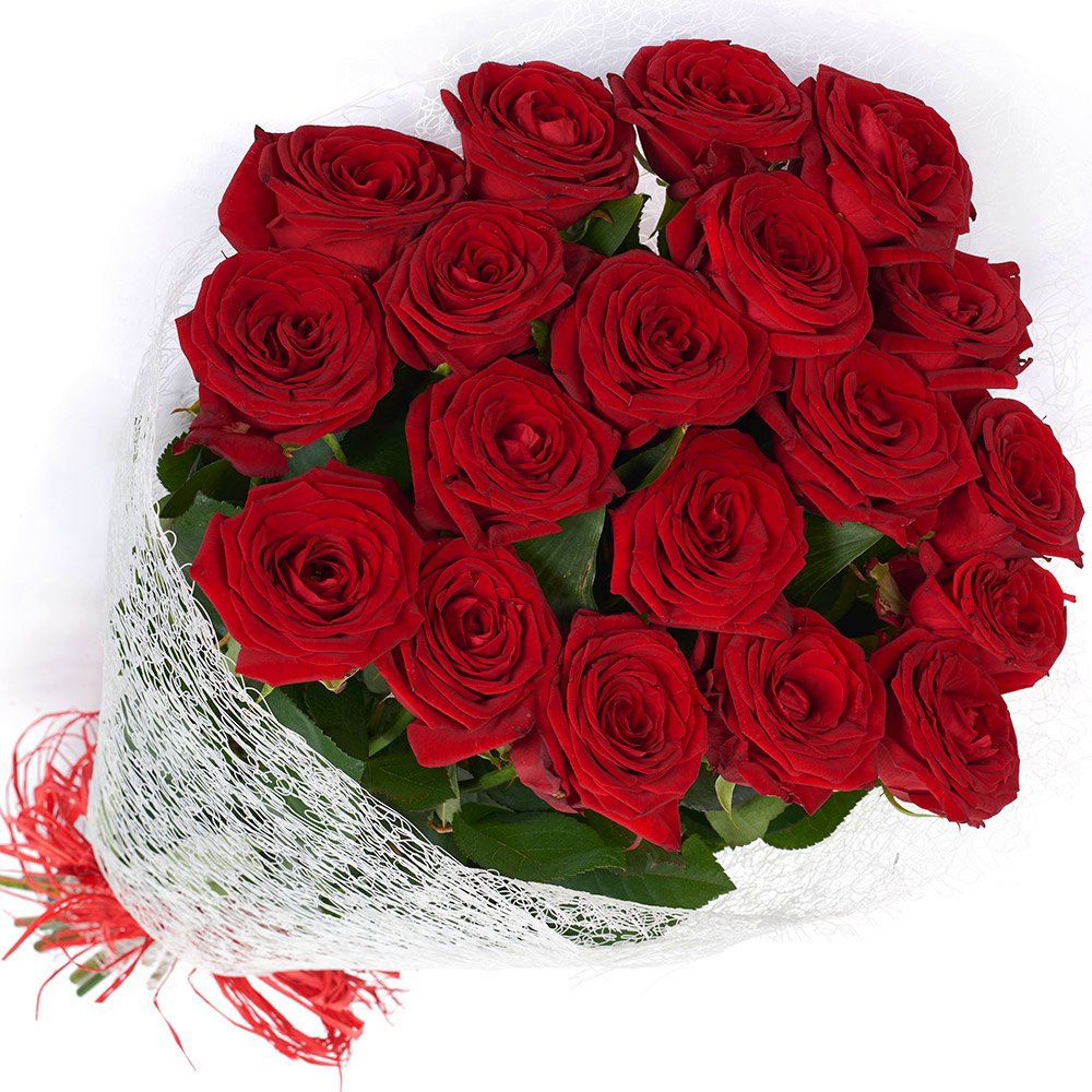Букет состоит из 19 красных роз, в красивой упаковке.