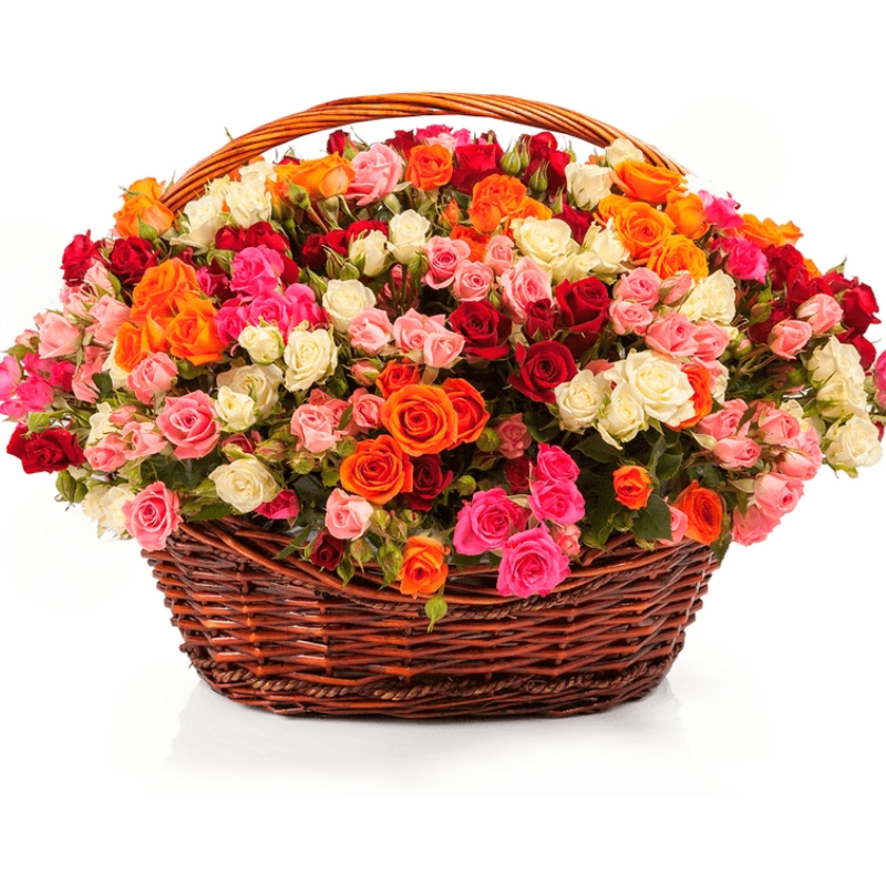 MIX из 101 кустовой розы, корзина.