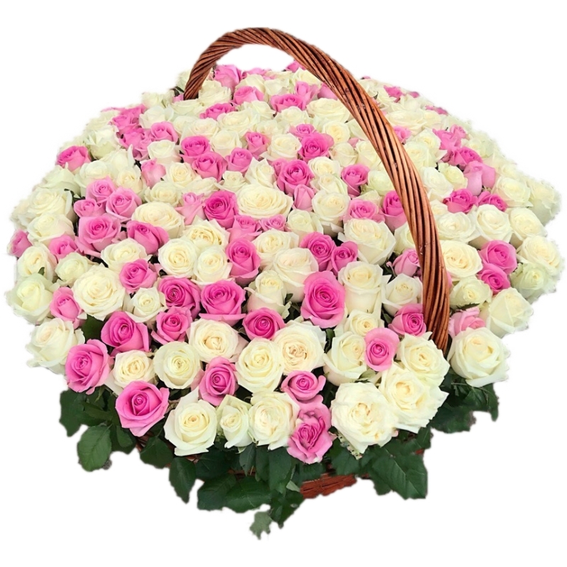 Букет MIX из 201 белой и розовой розы в корзине