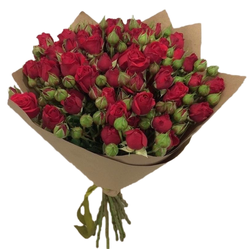 Букет из 11 красных кустовых роз в крафте