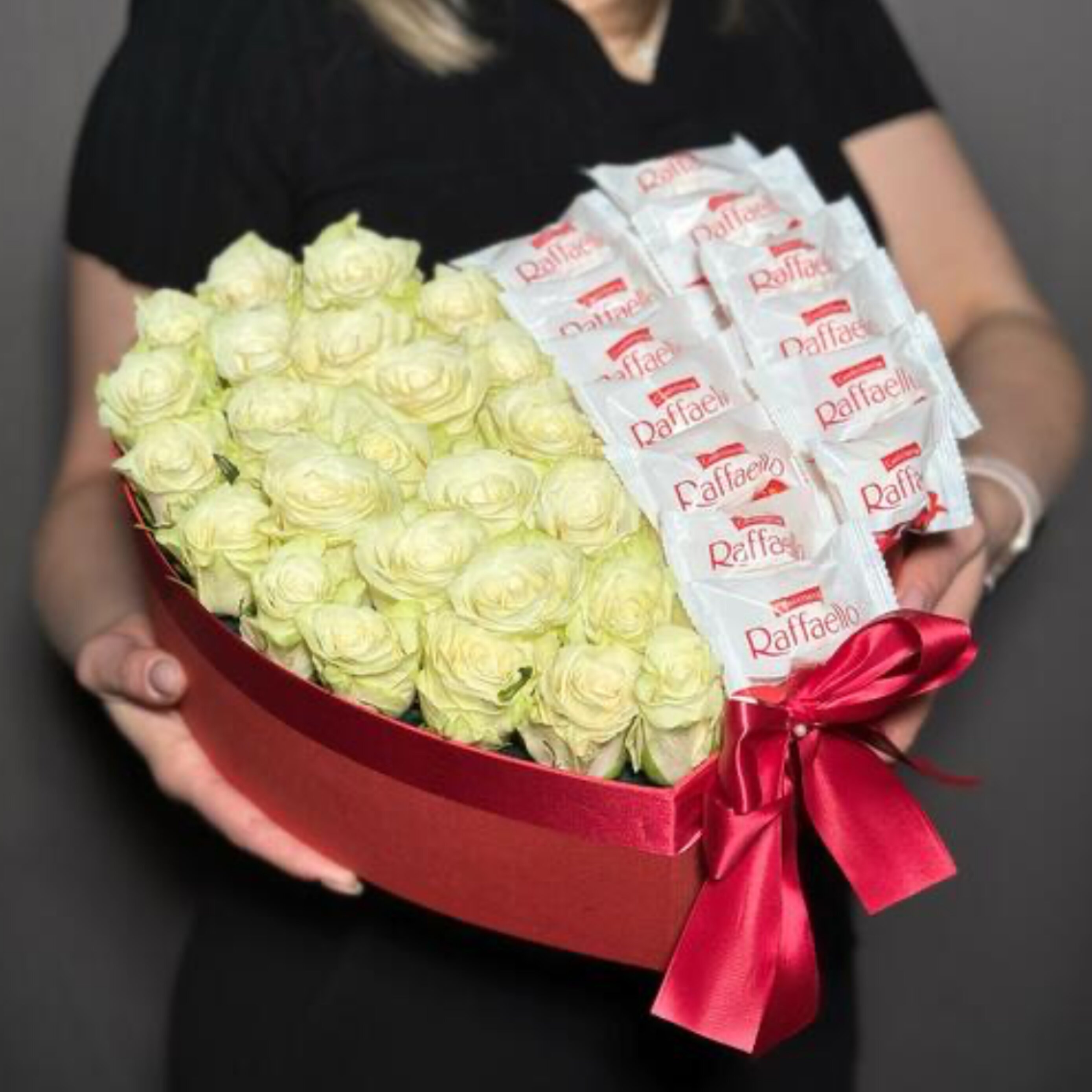 Сердце из белых роз с Рафаэлло