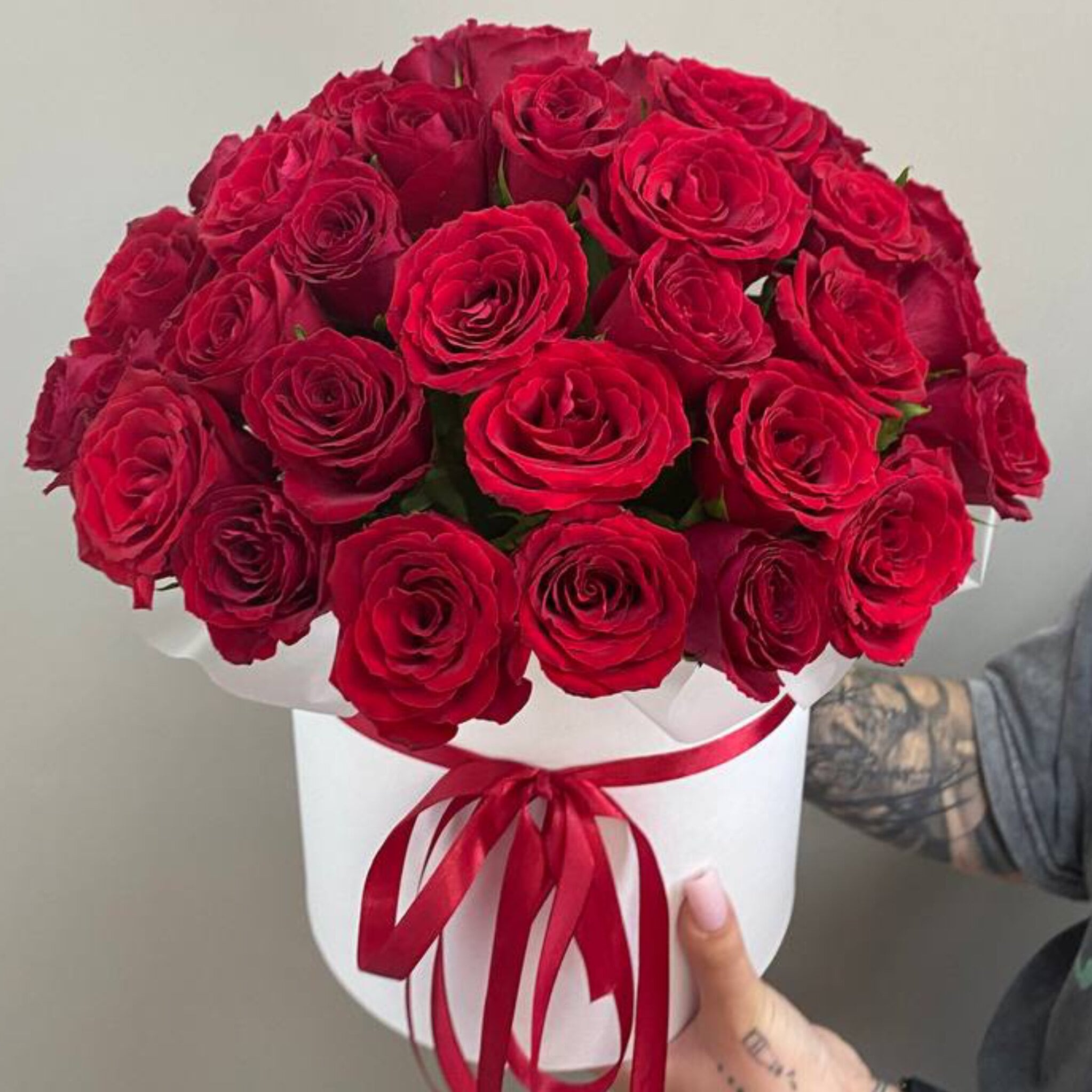 35 красных роз в коробке